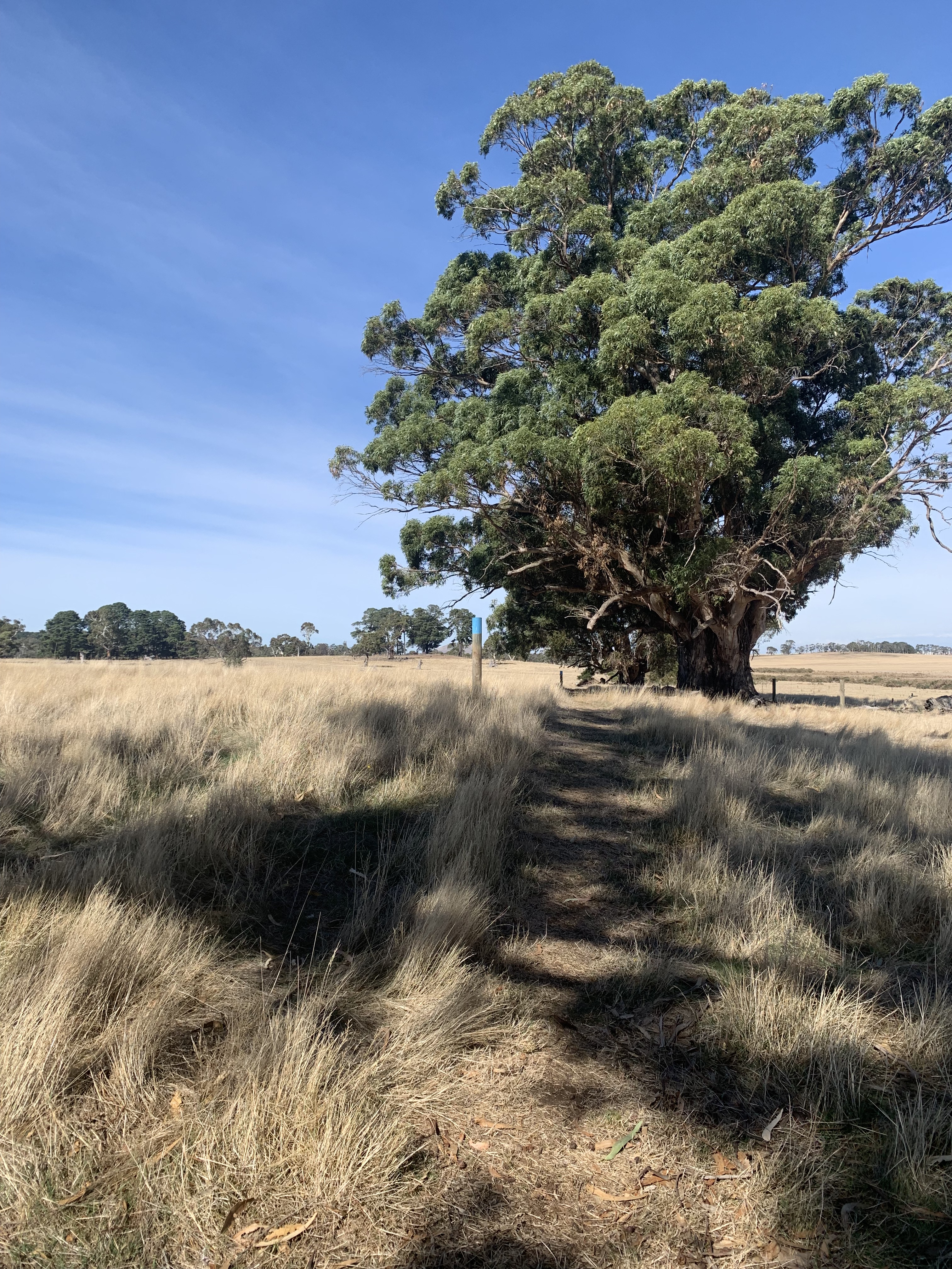 Archie and I followed the clearly mown path and the sign posts for 750 metres from the car park. In the distance I could see the funeral momuments on the rise of an old volcanic mound.