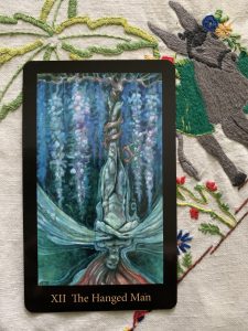 The Hanged Man has come to support my soul work by reminding me to use this time to go within, to quietly prepare for the renewal that will come when ‘spring’ returns and movement begins again.