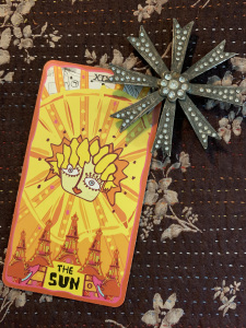 I pointed out that it is my understanding that the Sun card bathes us and our new pathway in light, offers possibilities and helps us to focus. The Sun makes us feel alive and fills us with optimism. Vlad smiled but I knew she was primarily focusing on just what the shoes represented.