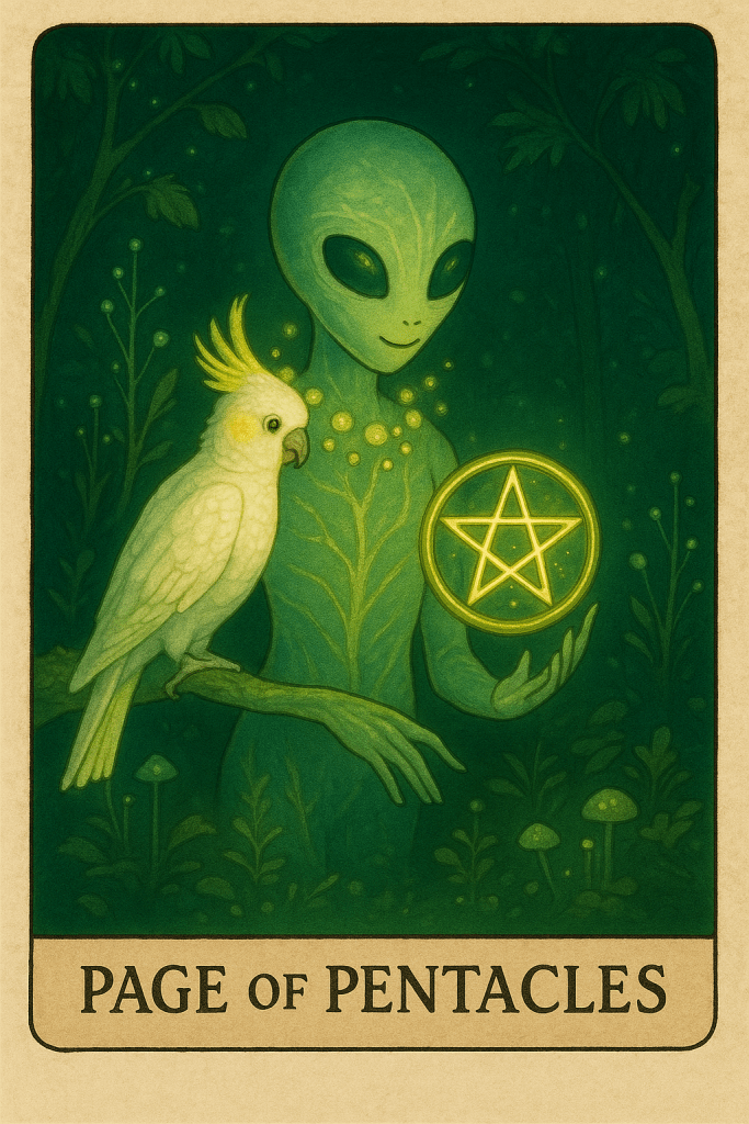 Luma is a student, an apprentice, the one who sees potential in the smallest seed. Each seed collects fragments of possibility: fallen spores, bits of quartz, stray ideas whispered by the wind. Within them the pentacle becomes a seed of promise — a symbol of what can grow when care and attention are given freely.