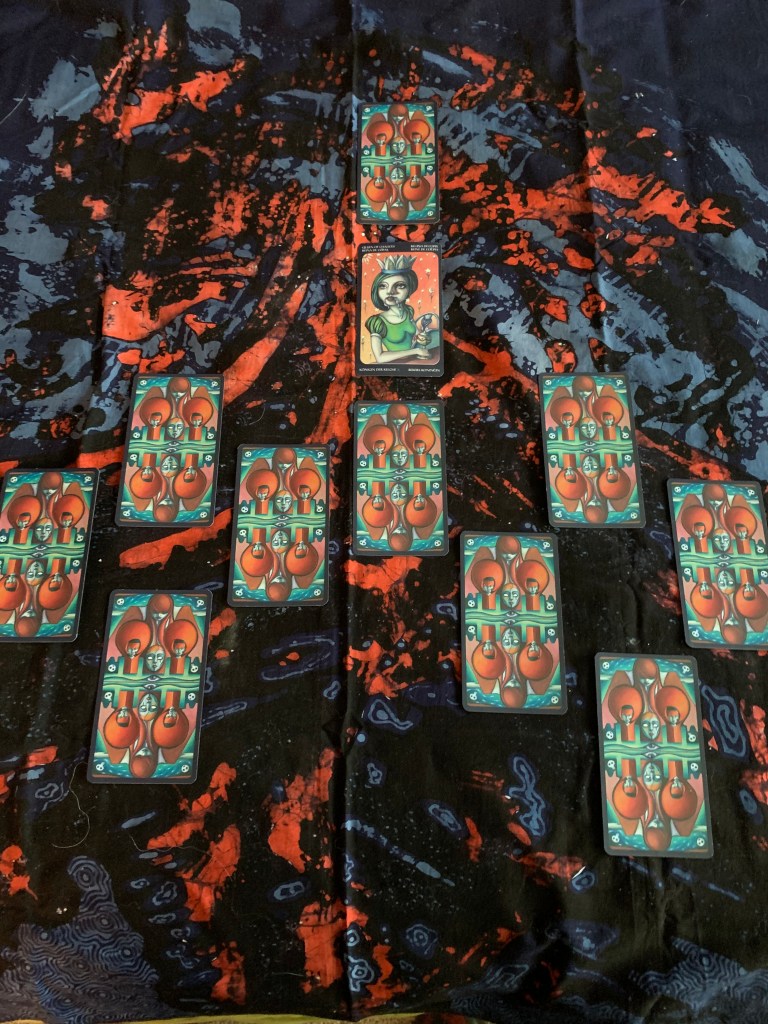 There are plenty of spreads that challenge card slingers to use their Tarot decks to do some Shadow Work. Given my commitment to spend a year working with the Tarot of the Sweet Twilight I have decided to use it. This is a huge spread and initially I have laid out the root section of the Tree of Life and will work one card at a time.