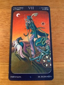 One of my favourite Chariot cards is in the Tarot Del Fuego! When I meditate upon this card and indulge in a spot of path working I can see myself, all packed, ready to hit the road in my Gypsy Caravan. I mentally plan that I can stop and have Tarot Tiny Tea with all the Fey folk I meet along the way. I muse and wonder if Mrs Rabbit has fresh baked cookies and if Hedgehog has made any of his famous hedgehog slice.