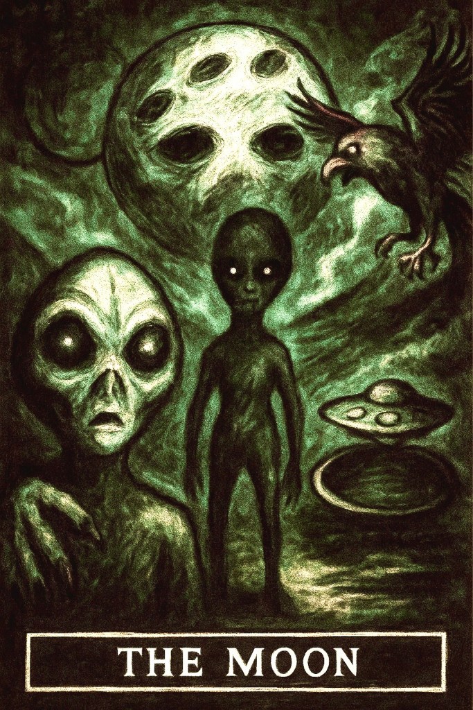 This card asks: What are you refusing to see clearly? What truths are cloaked in shadow, what lies feel comfortable to believe? Under this Moon, paranoia and uncertainty breed. The danger lies not in monsters outside us, but in the illusions we weave within.